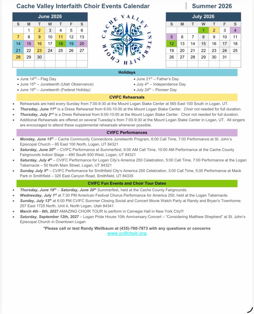 Cache Valley Interfaith Choir is dedicated to uniting a community of various faiths and backgrounds through the power of music.